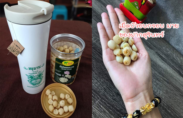 เม็ดบัวอบกรอบ มาย เม็ดบัวอบแห้ง ประโยชน์ของเม็ดบัวอบกรอบ ของฝากสุรินทร์ ของฝากเมืองไทย ขนมเพื่อสุขภาพ